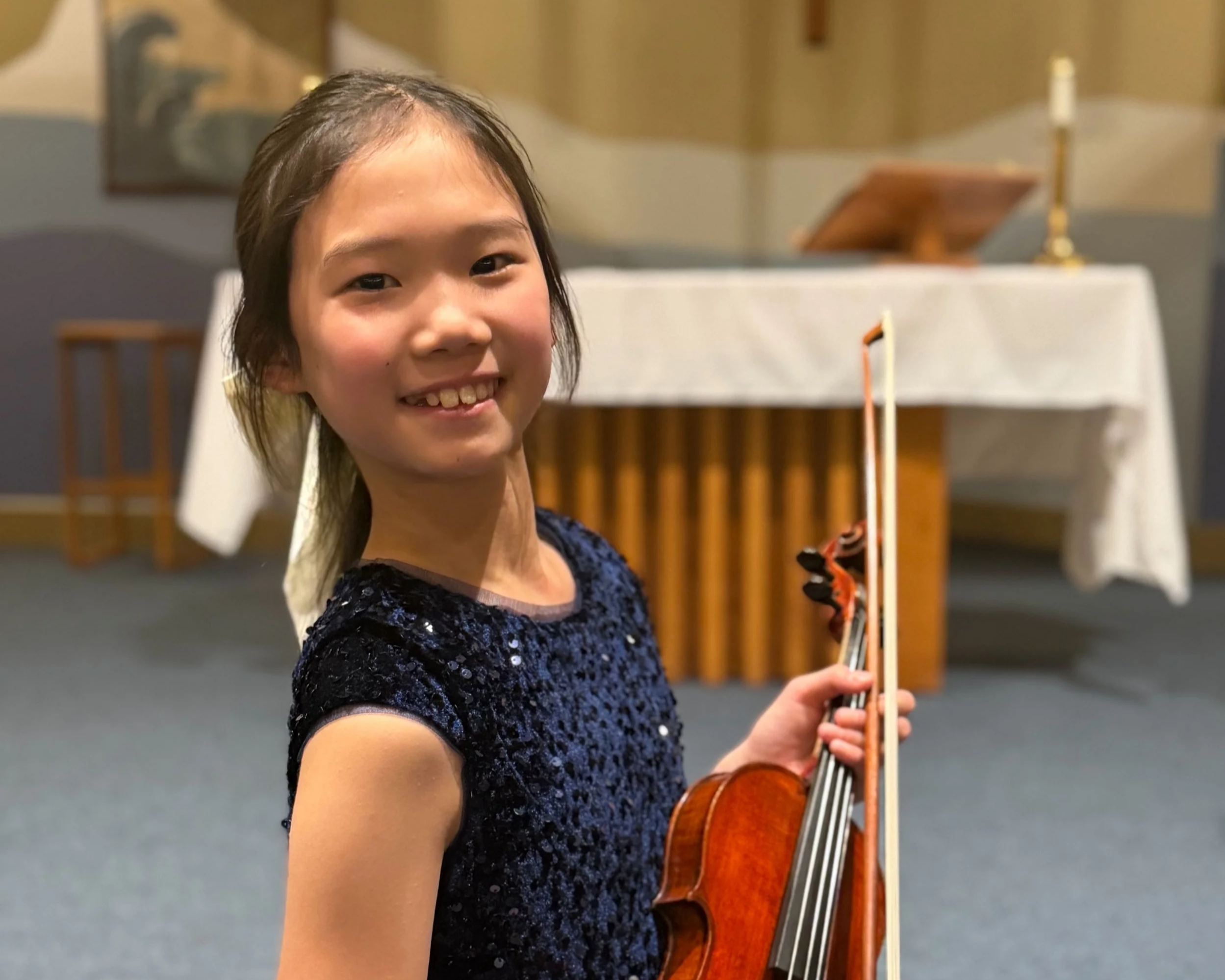 Emily Shih is a fourth‑grade student at the Montessori School of Beaverton. She began her violin studies at age five with her teacher, Andrea Hawkins. Emily is a member of the Portland Youth String Ensemble—part of the Portland Youth Philharmonic organization—where she currently serves as co‑concertmaster. She also performs in a chamber music group and enjoys collaborating with other young musicians. Emily’s recent accomplishments include participating in the 2025 Oregon ASTA Showcase (Honor Recital) and receiving an Outstanding Award at the 2025 OMTA Concerto Festival. Beyond the violin, Emily is an avid reader who usually has a book she is excited to discuss. She also takes Jazz and Contemporary dance classes and performs in local recitals. In her free time, Emily practices digital painting, creating original artwork inspired by her imagination, and enjoys following professional figure skating competitions. Emily is honored to participate in the Oregon Mozart Players Young Soloist Competition and looks forward to continuing her growth as a musician.